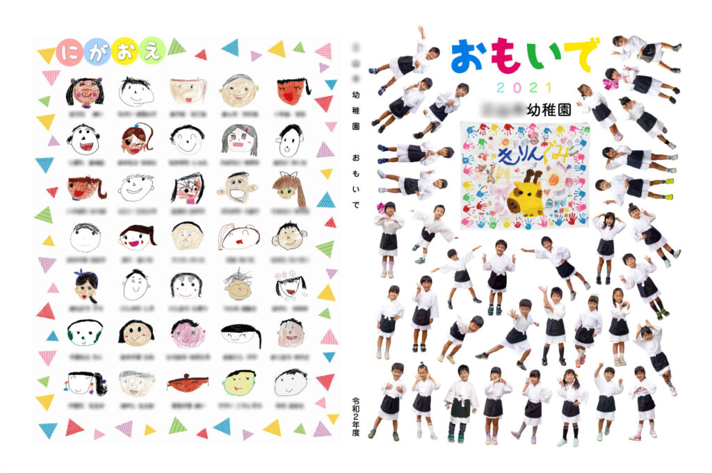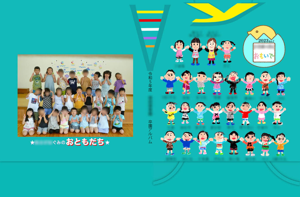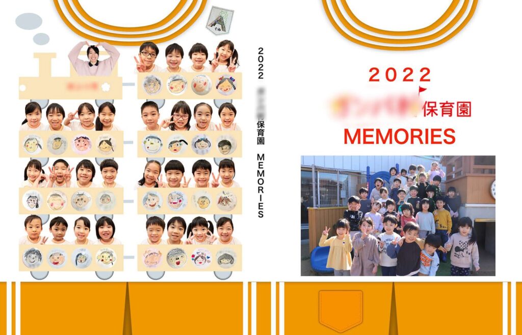 また、背表紙に園名ではなく似顔絵を配置することで、