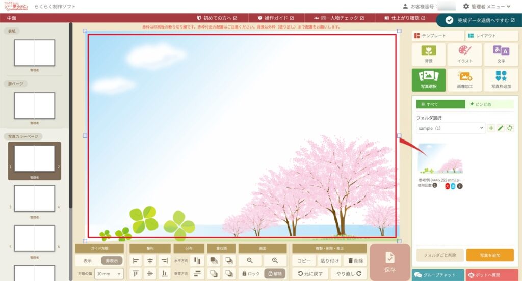 使い慣れたCanvaの背景画像も、PNGやJPGで保存すれば、らくらく制作ソフト上でそのまま使うことができます!