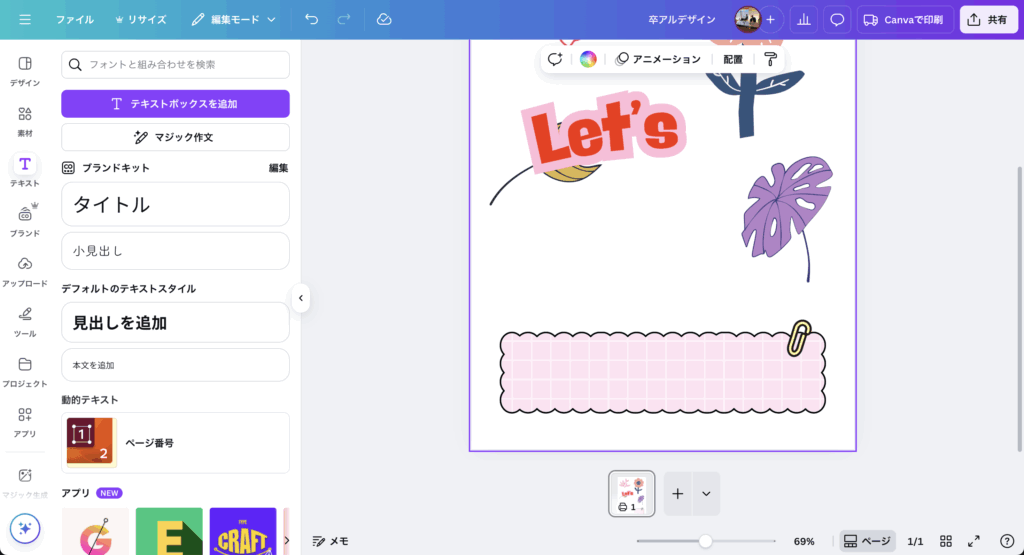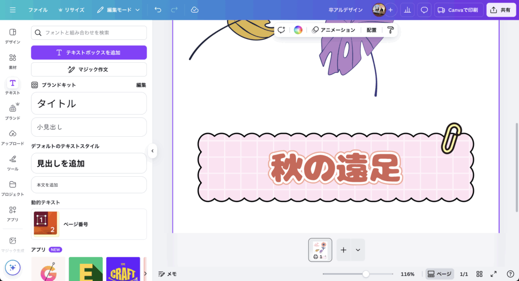 アップロードできたタイトル素材は、ドラッグ&ドロップでキャンバスに引っ張ってくると配置することができます。