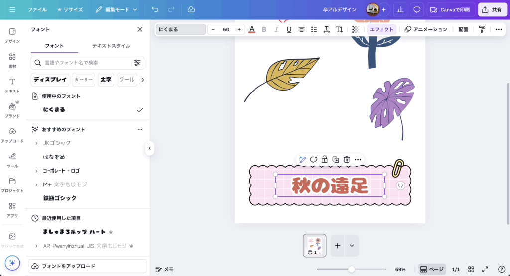 「卒園式」のタイトル素材も、作った草花に合わせて植物があしらわれている背景をチョイス。