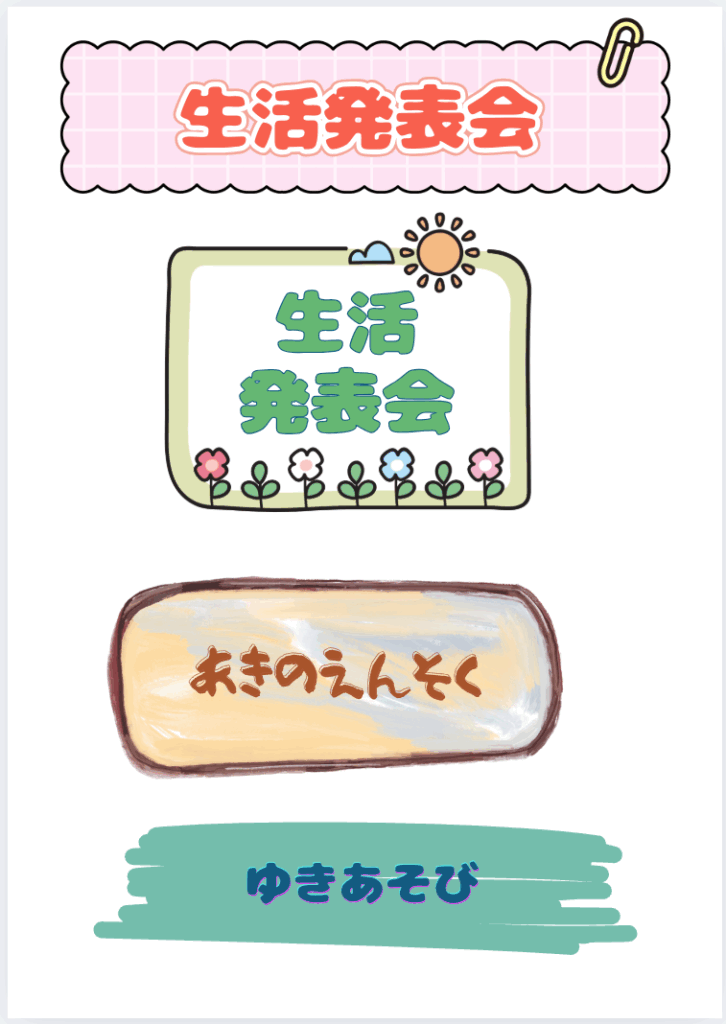 卒園式のタイトルに使っている草花の装飾も、文字の横に添えるとタイトルっぽく使えたりします!