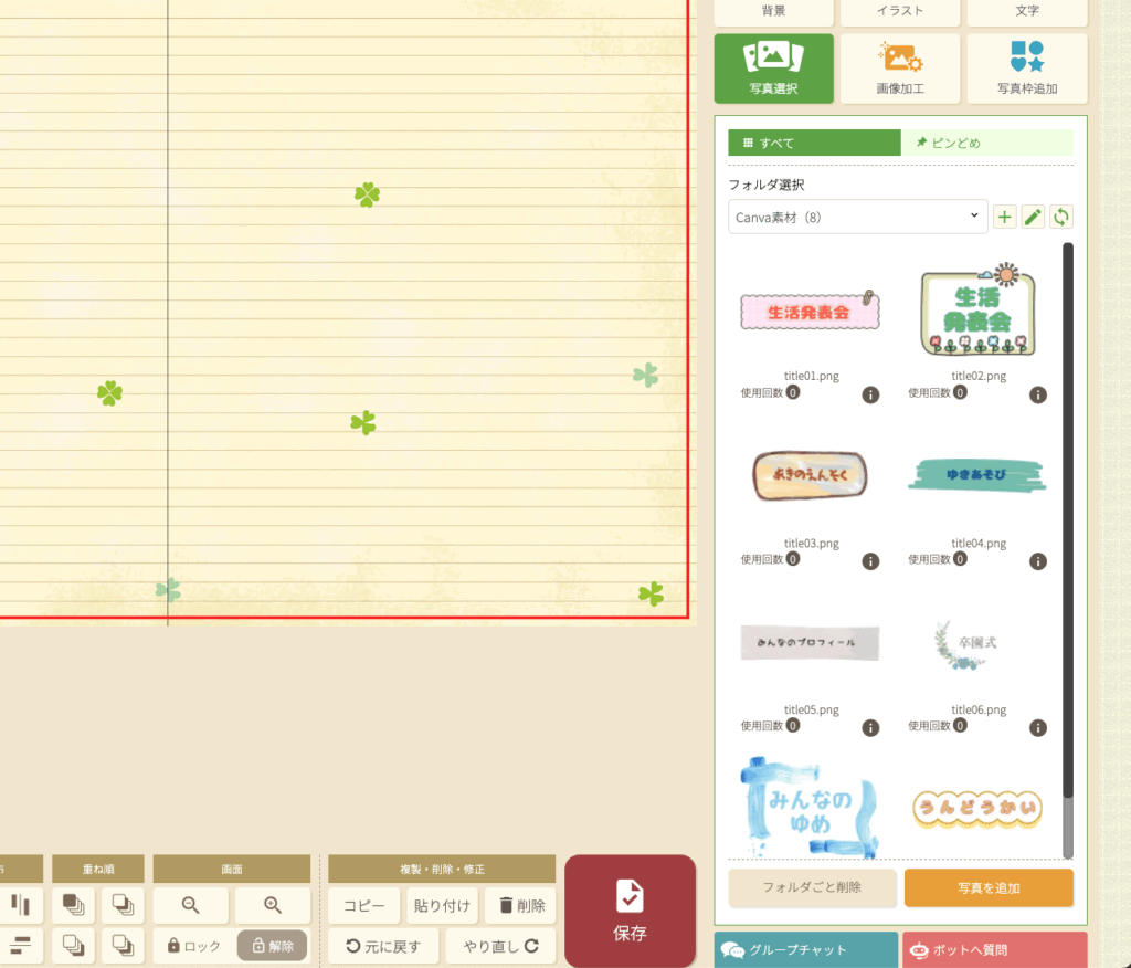 夢ふぉとのらくらく制作ソフトも、たくさんの素材を頑張って追加しているんですが、それでも物足りないと感じたときに使える、Canvaを利用したタイトル素材の作り方をご紹介します!