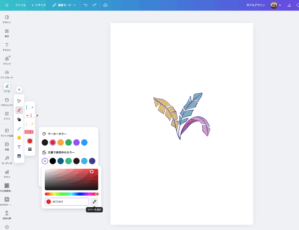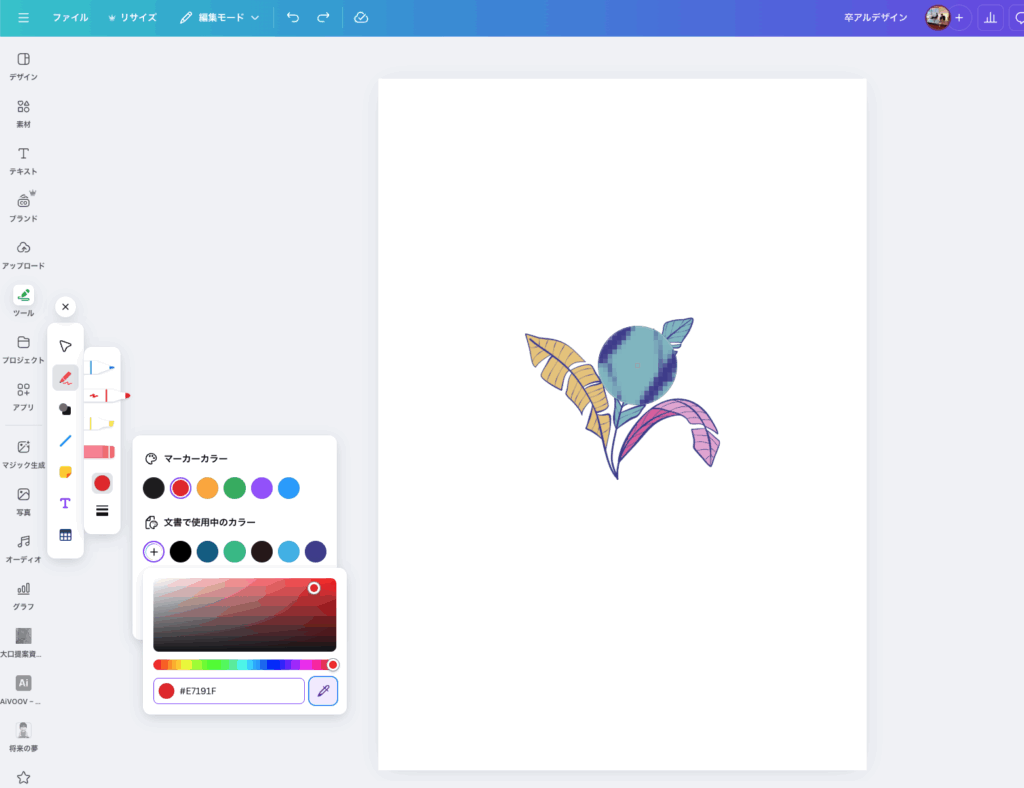 すると、その色がペンツールで描けるようになります。